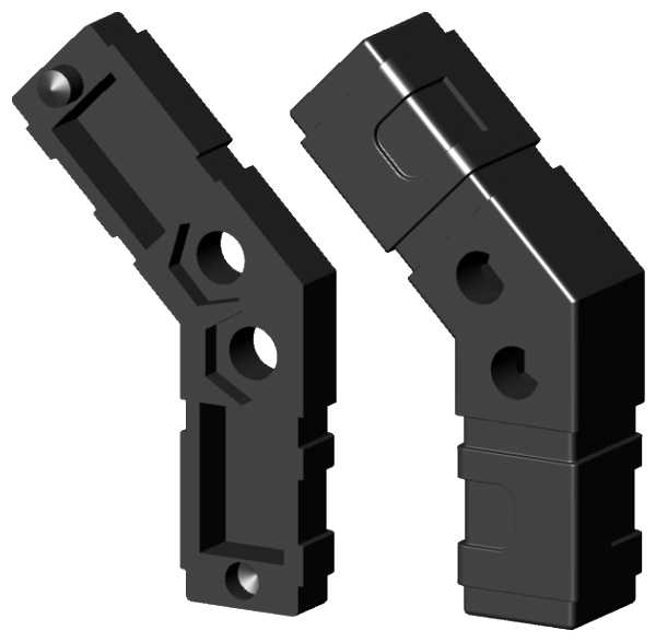 Łączniki Plastikowe z polamidu PA6 nadają się do budowy lekkich konstrukcji takich jak regały, ściany działowe, ekrany akustyczne, stelaże do reklam, klatki - kojce do zwierząt. Standardowy kolor czarny. Inne kolory na zamówienie. Łączniki mają wiele zalet, m.in.: lekkie, izolujące, odporne chemicznie, nierdzewne i łatwe w obróbce.