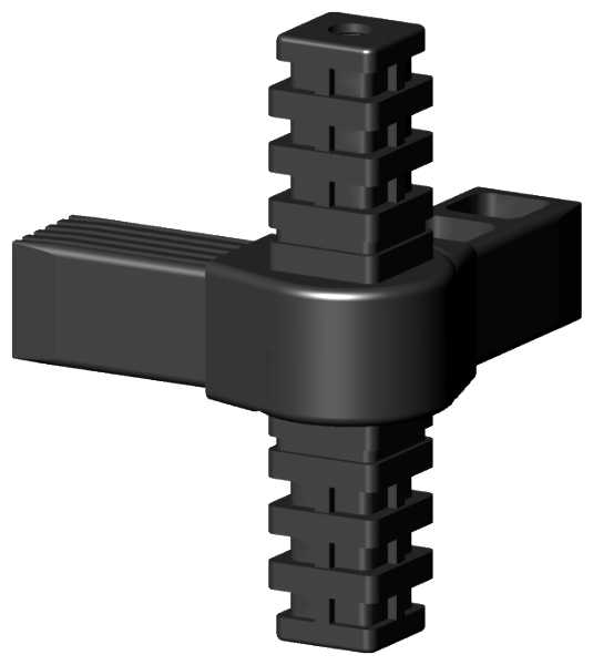 Łączniki Plastikowe z polamidu PA6/wzmocnione włóknem szklanym nadają się do budowy lekkich konstrukcji takich jak regały, ściany działowe, ekrany akustyczne, stelaże do reklam, klatki - kojce do zwierząt. Standardowy kolor szary RAL 7035, czarny. Inne kolory na zamówienie. Łączniki mają wiele zalet, m.in.: lekkie, izolujące, odporne chemicznie, nierdzewne i łatwe w obróbce.