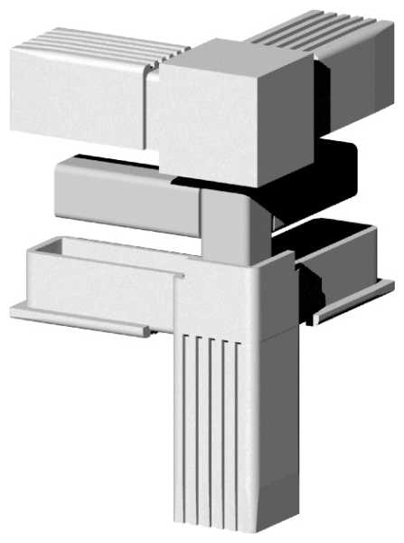 Łącznik plastikowy z rdzeniem metalowym do profili aluminiowych 25x25x1,5mm, typ 3D3 V25 MS