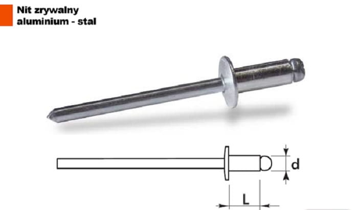 Nit zrywalny stalowo - aluminiowy, 4,8 x 24mm z łbem płaskim.