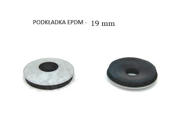 Podkładka EPDM - 19mm ( 19mm średnicy ). Średnica otworu wewnątrz 6,3mm. Podkładka wykonana ze stali i gumy. Podkładka użyta do mocowania blachy lub siatki nie spowoduje ich zarysowania podczas montażu.