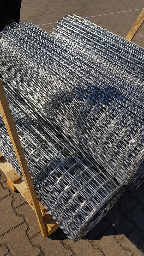 Siatka zgrzewana stalowa w pokrywie zynkowo - aluminiowej. Rolka o długości 25mb, szerokość 1m. Oczko 50x50mm. Drut 2mm. Siatka zamknięta. Doskonale nadaje się do budowy wolier, kojcy, ogrodzeń itp. Termin realizacji zamówienia, cena oraz sposób dostawy do uzgodnienia - w zależności od ilości siatek.