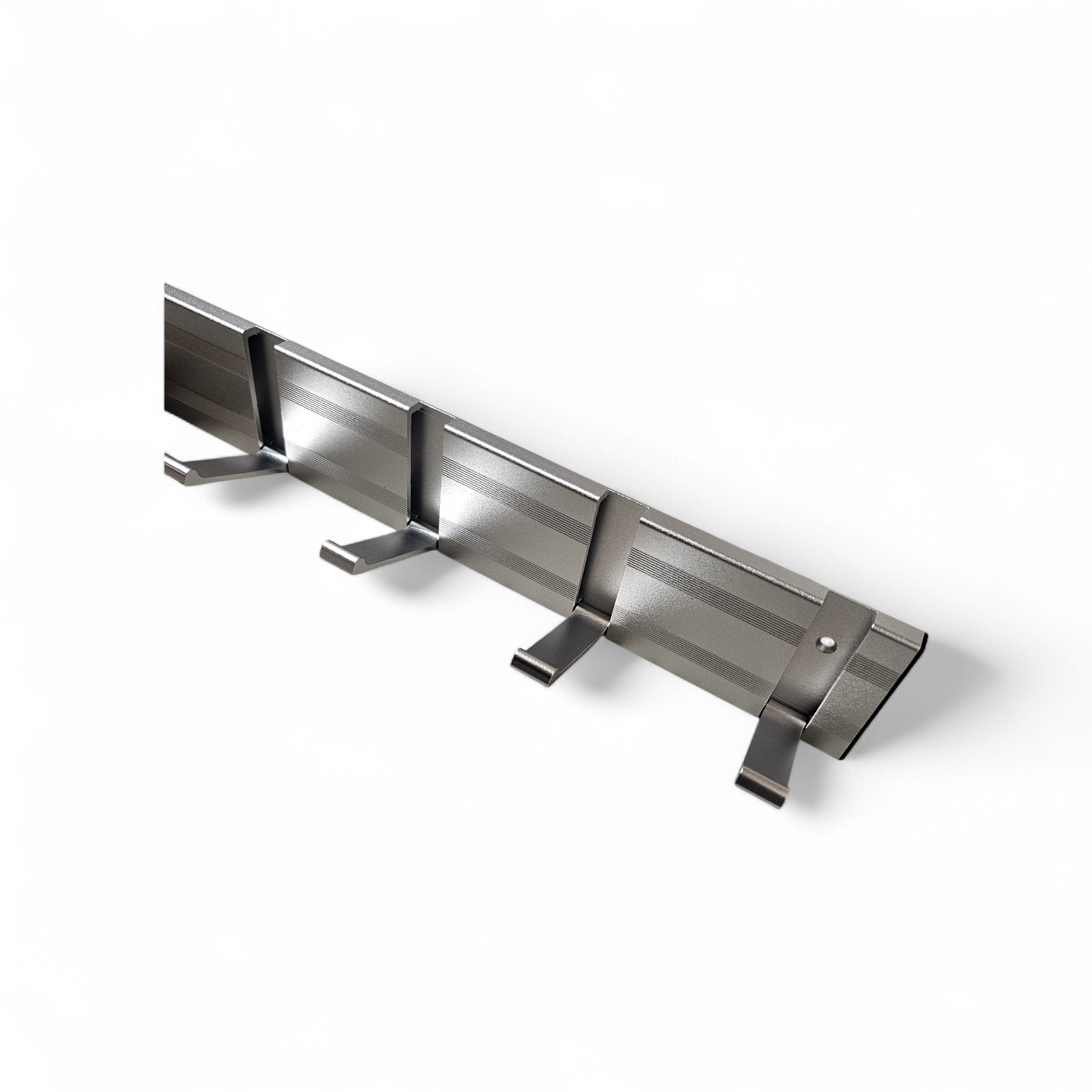 Funkcjonalny i nowoczesny wieszak ścienny wykonany z trwałego aluminium w eleganckim, srebrnym kolorze. Idealny do przedpokoju, łazienki, kuchni lub biura. Wyposażony w 5 ruchomych haków, które można dowolnie ustawiać, zapewnia wygodę użytkowania i lepszą organizację przestrzeni. Dzięki kompaktowym wymiarom (długość 370 mm, wysokość 62 mm, grubość 10 mm) nie zajmuje dużo miejsca, a jednocześnie oferuje dużą praktyczność.