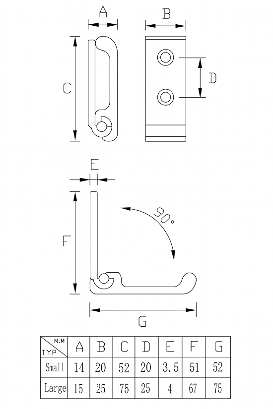 Wieszak aluminiowy ścienny otwierany, mały, wysokość 52mm