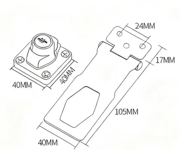 Zamek na klucz, rygiel, zamknięcie, stal nierdzewna, 105x40mm