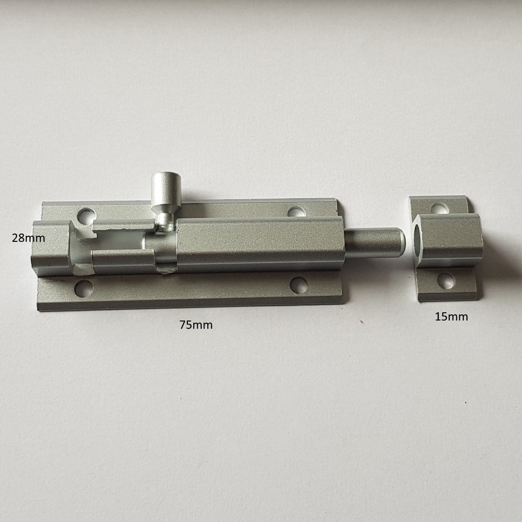 Zasuwa z okrągłym ryglem dł. 75 mm szer 28 mm aluminiowa