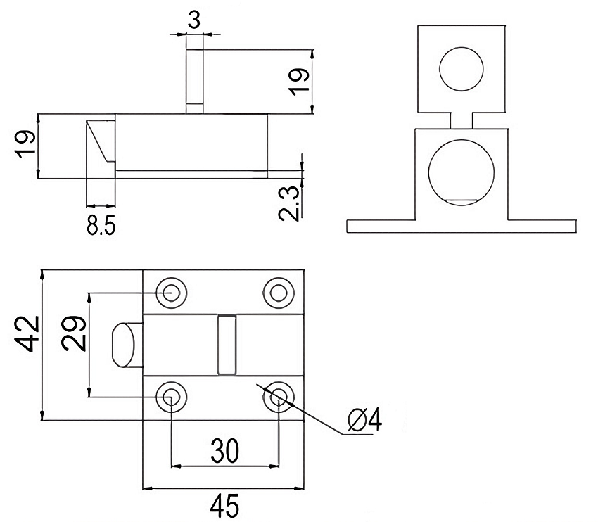 Zatrzask sprężynowy, samozamykacz, stal nierdzewna AISI 201, 44x42mm