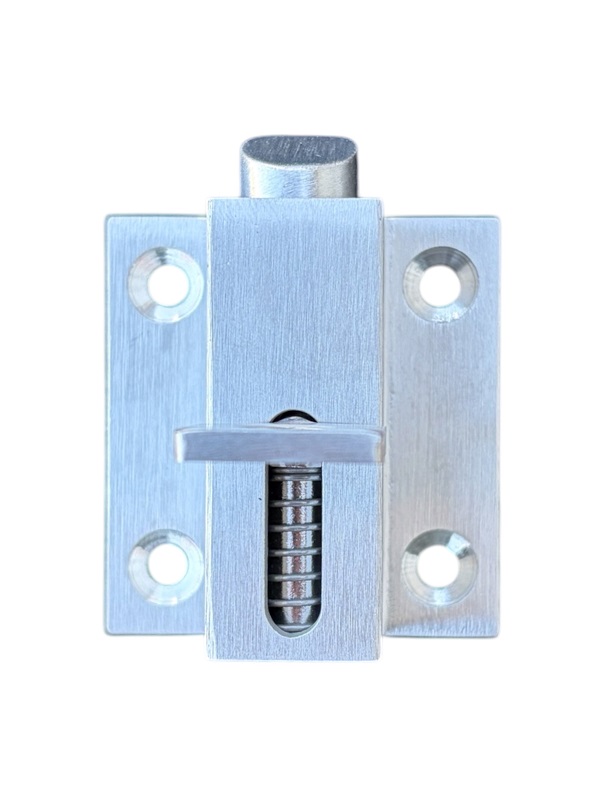 Solidny i trwały zatrzask sprężynowy wykonany z wysokiej jakości stali nierdzewnej AISI 201 w estetycznym wykończeniu satynowym. Dzięki wbudowanemu mechanizmowi sprężynowemu zapewnia automatyczne zamykanie drzwi, furtek lub okien, zwiększając komfort użytkowania i bezpieczeństwo.