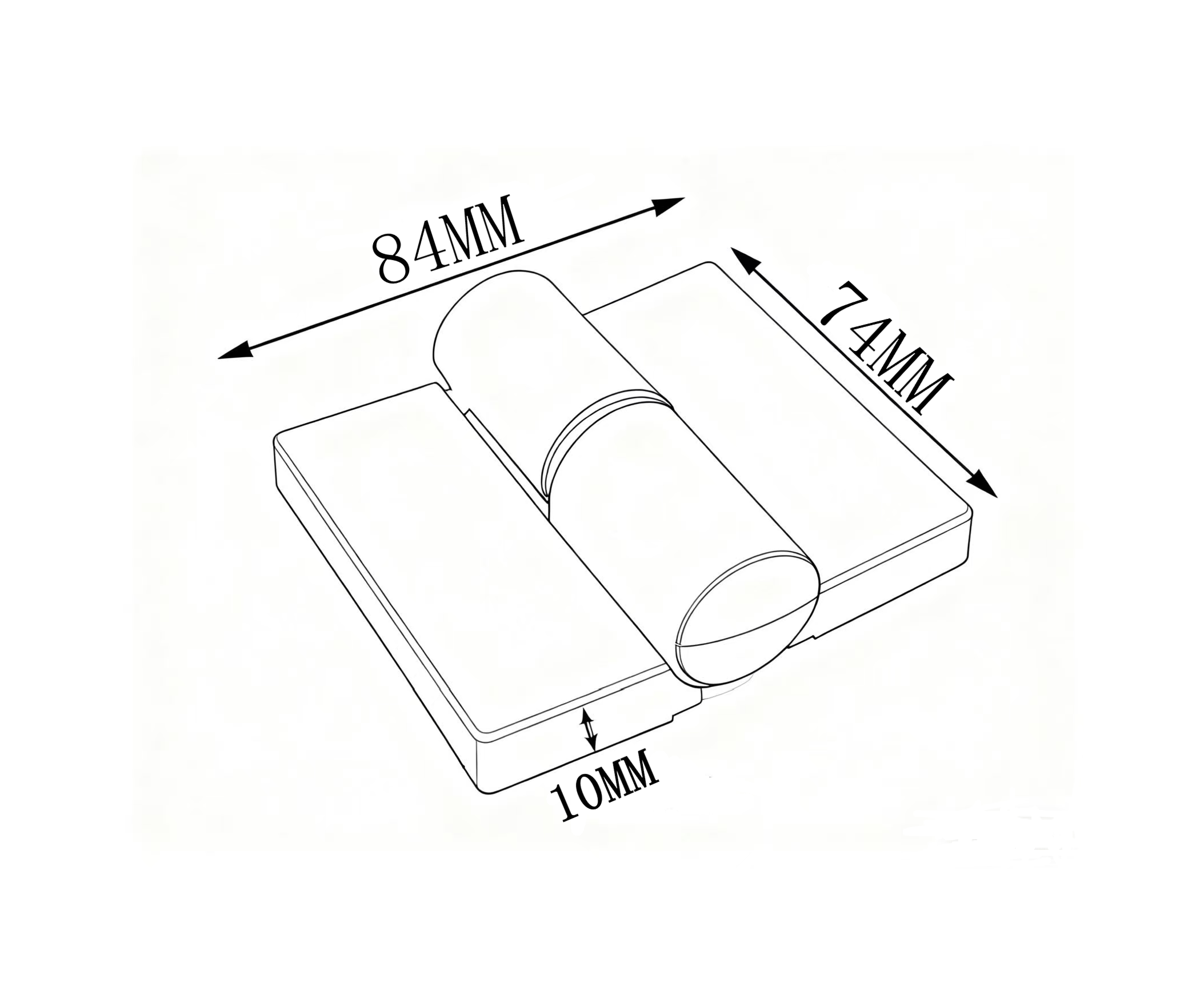 Zawias lewy samodomykający – plastikowy z rdzeniem stalowym i metalowymi skrzydełkami, 84x74mm