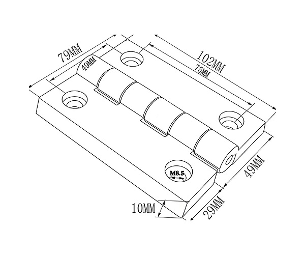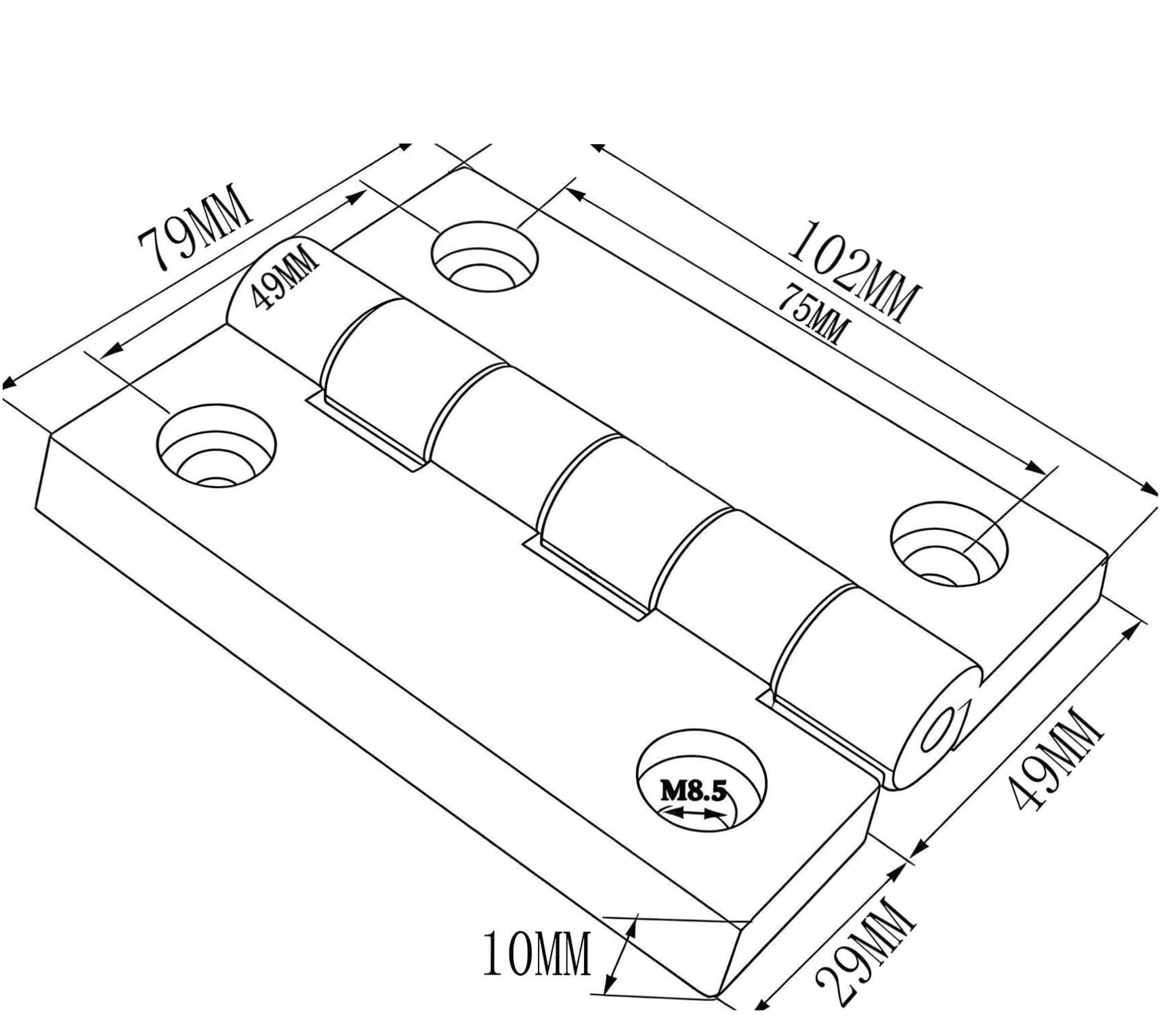 Zawias plastikowy 102x79x10mm z rdzeniem stalowym