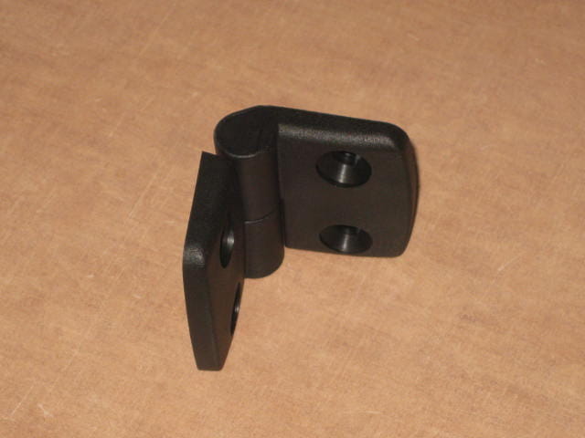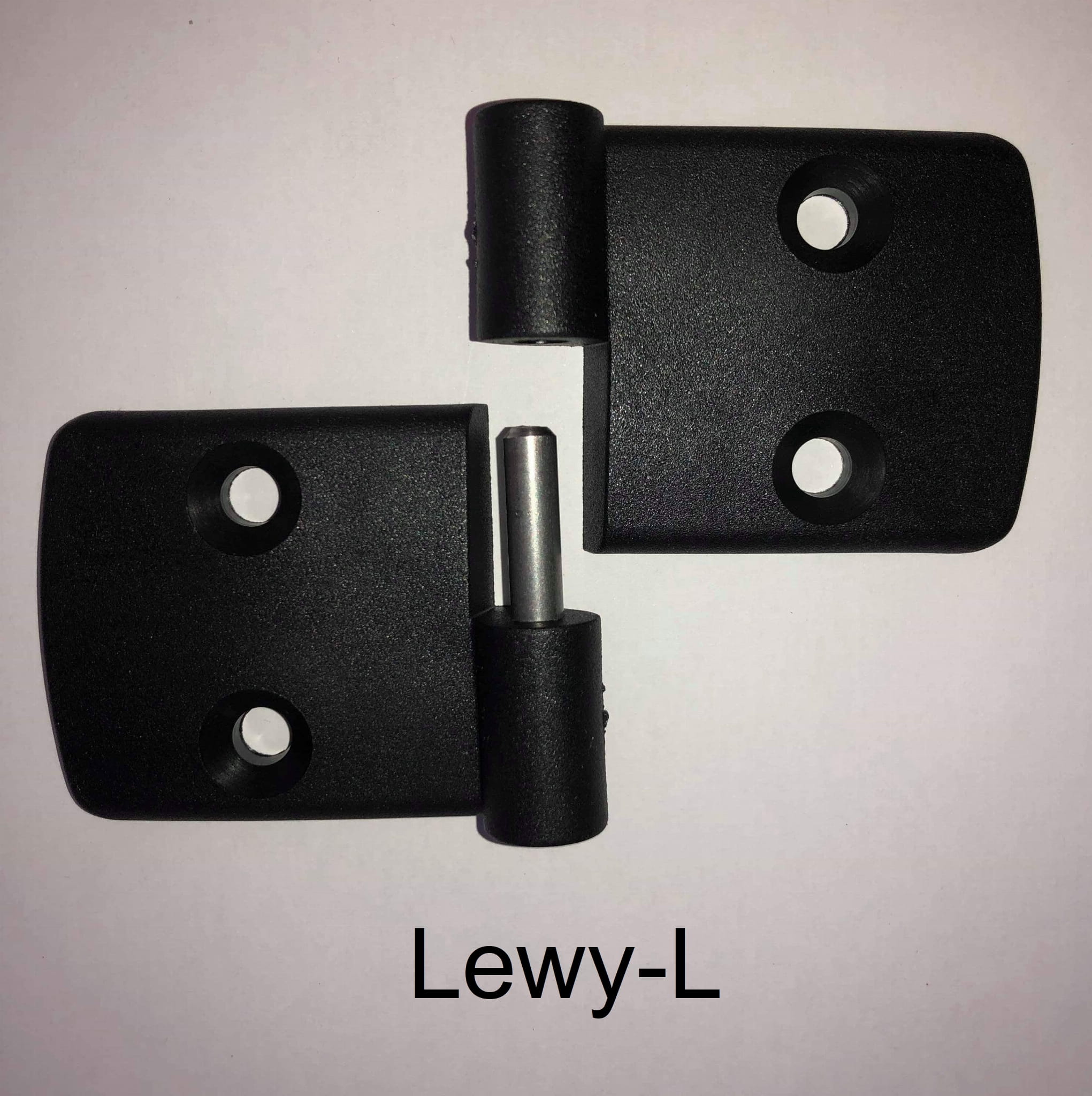 Zawias lewy-L dwuczęściowy ,wykonany z tworzywa sztucznego.Zawias do profili aluminiowych kwadratowych 45x45mm i większych.