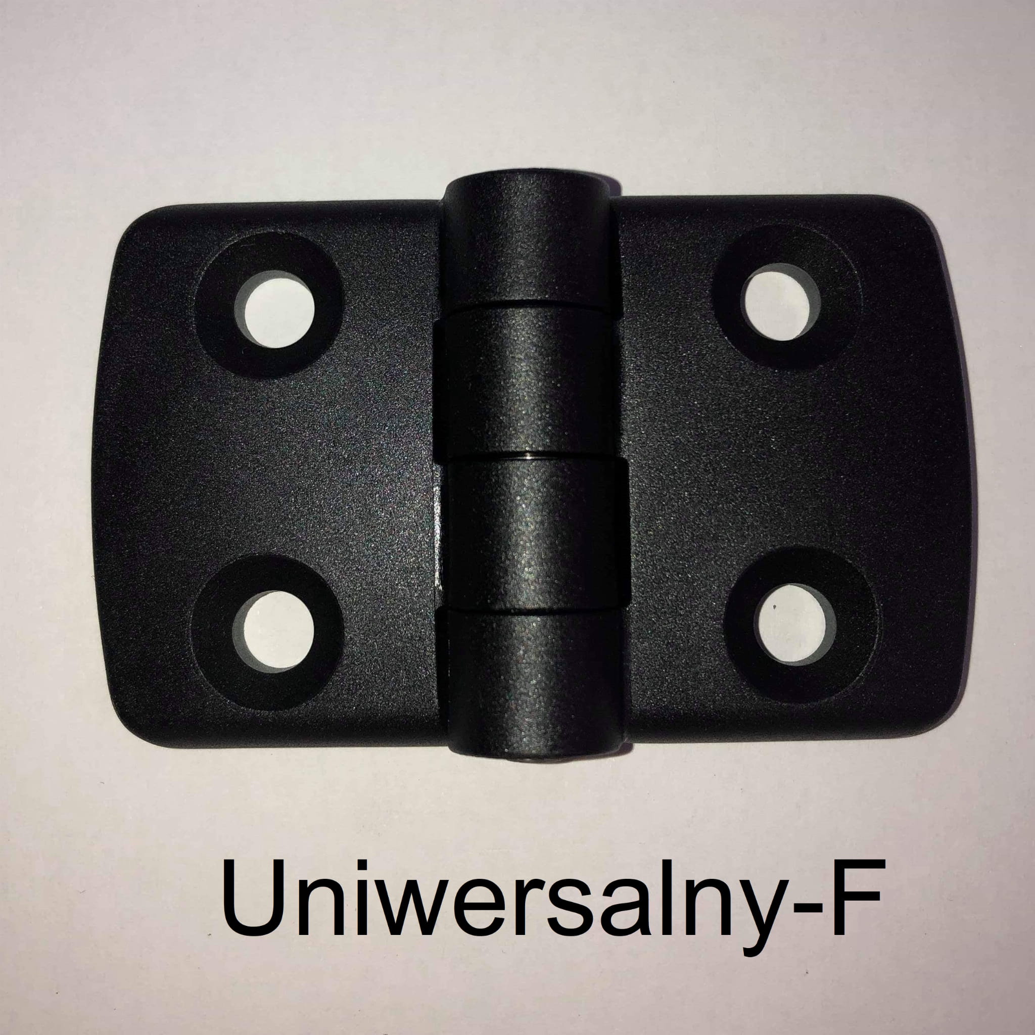 Zawias uniwersalny -F , jednoczęściowy ,wykonany z tworzywa sztucznego.Zawias do profili aluminiowych kwadratowych 45x45mm i większych.